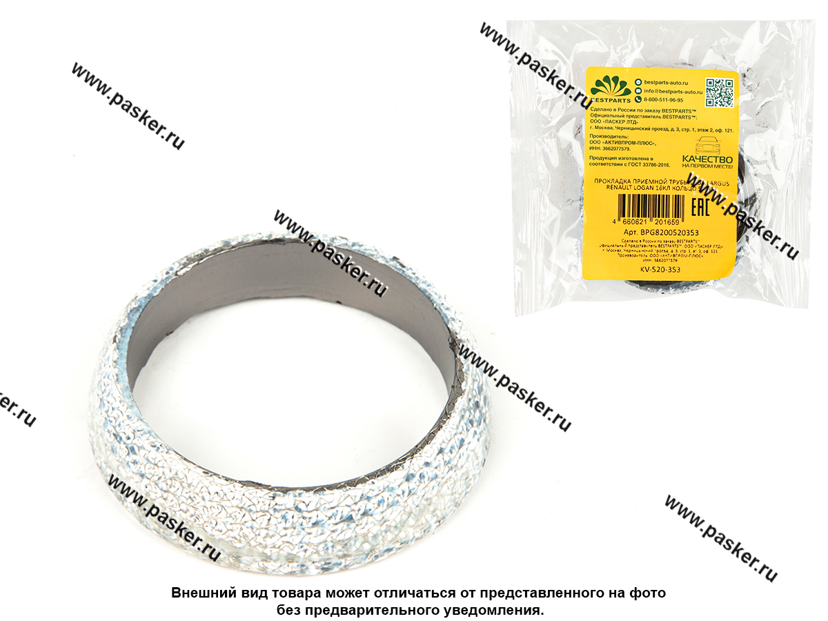 Прокладка приемной трубы Lada Largus Renault Logan 16кл кольцо 54мм BESTPARTS BPG8200520353