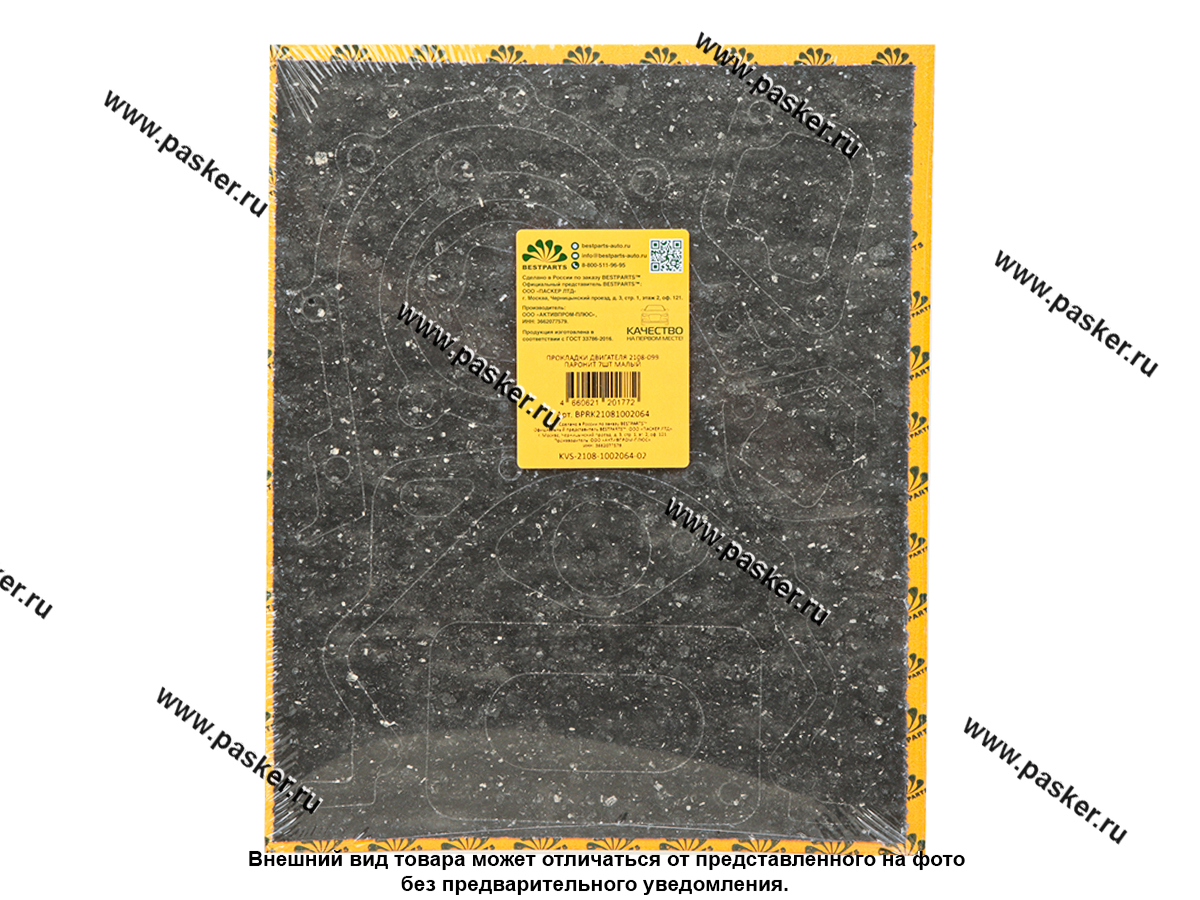 2108-1002064 для а/м ВАЗ 2108-15, 1117, 1118, 1119 К-т прокладок двигателя, паронит, 7 шт. KVS-2108-1002064-02 индивидуальная упаковка (картонная подложка, пленка)