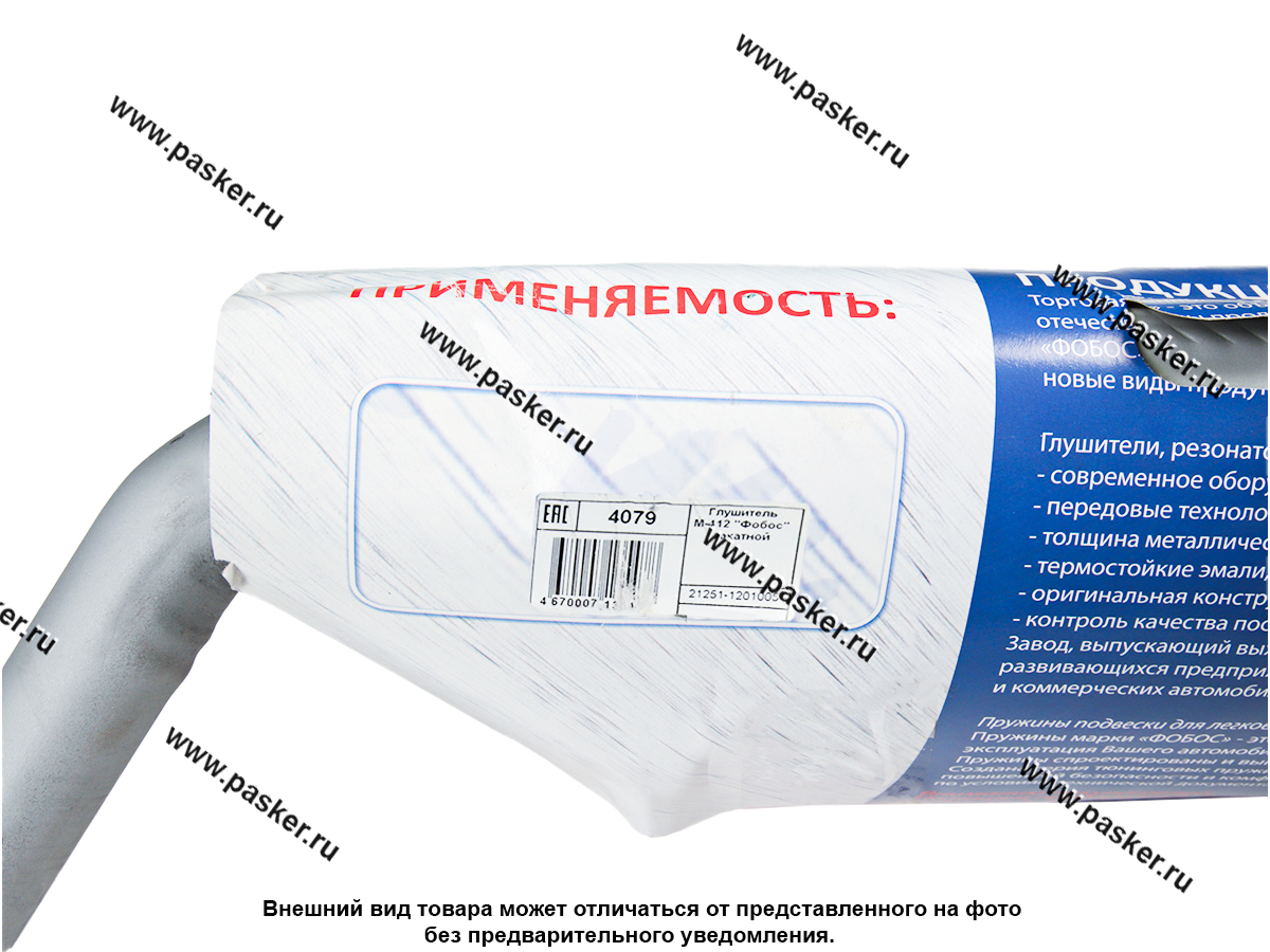 Глушитель выхлопной системы максимально приближен по конструкции к конвейерному изделию (конфигурация, объем, звукопоглощающие элементы). Глушитель выхлопной системы выполнен без применения абсорбирующих волокнистых материалов, зачастую накапливающих в себе конденсат. Глушитель выхлопной системы имеет увеличенную прочность за счет двойного резонатора, закатного шва и имеет гарантированную герметичность при перепаде давления не менее 0,4 кг/см. Глушитель выхлопной системы имеет повышенную коррозионную стойкость из-за отсутствия сварки внутренних элементов шумоглушения с корпусом бачка и применения для его изготовления качественного холодно-катанного и листового проката ведущих российских производителей толщиной не менее 1,5 и 1,2 мм. соответственно. Глушитель выхлопной системы при изготовлении окрашивается термостойкой (не менее 600 градусов Цельсия) эмалью и проходит контроль геометрии и герметичности. Глушитель выхлопной системы имеет сертификат соответствия требованиям технического регламента Таможенного Союза ЕАС.