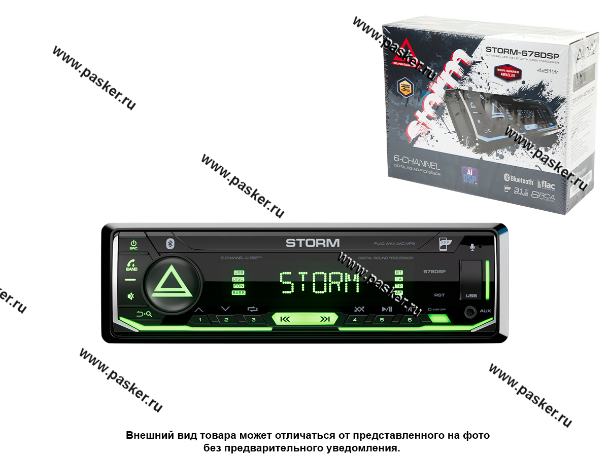 Автомагнитола AURA USB/Bluetooth/FM 4x51Вт STORM-678DSP