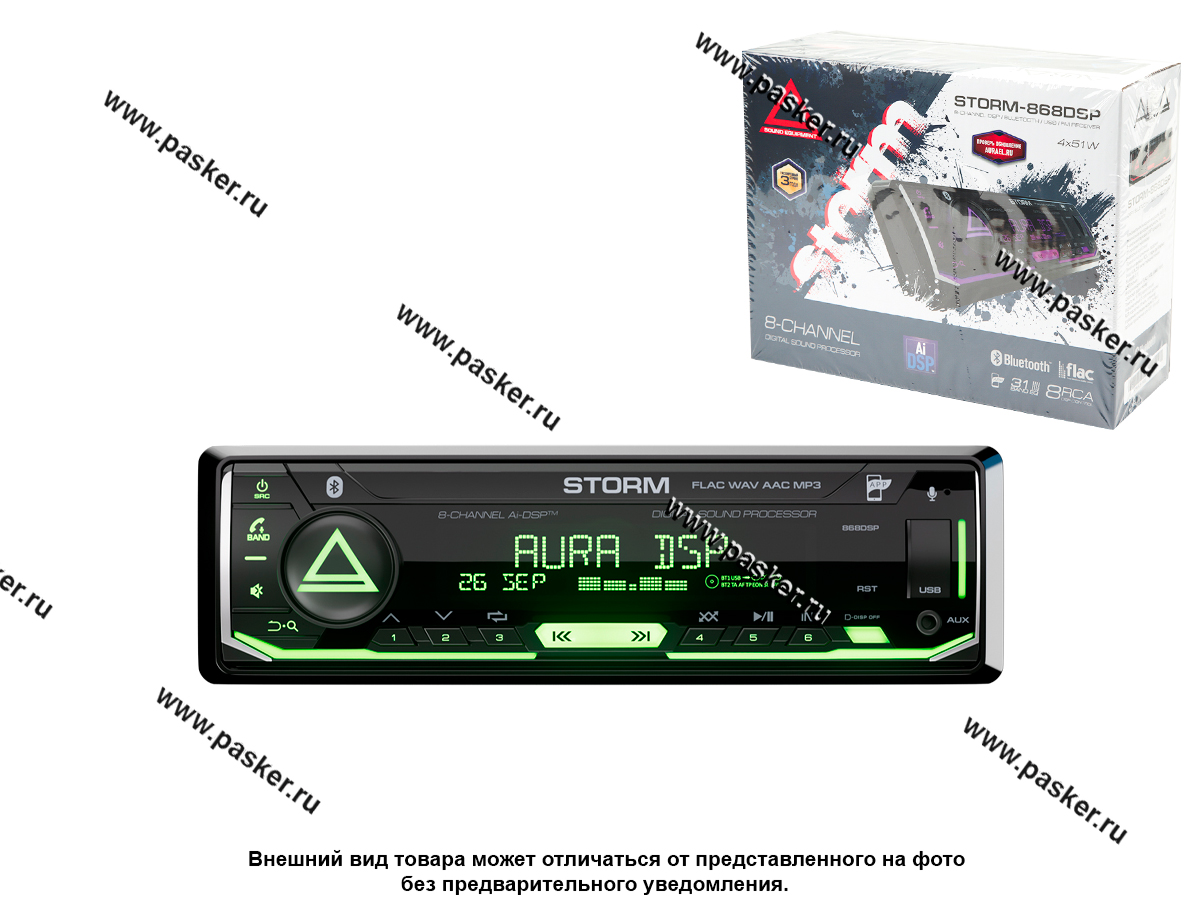 Автомагнитола AURA USB/Bluetooth/FM 4x51Вт STORM-868DSP