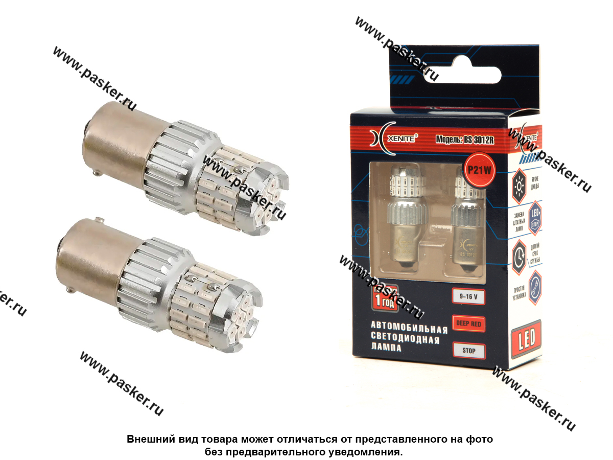 Автомобильная светодиодная лампа XENITE BS3012R (P21W/1156) (Стоп-сигнал/ ПТФ(задний)) (Цвет:Красный) 12V (уп.2 шт.) Гар.1год - качественный и надежный продукт для вашего автомобиля. Эта лампа будет отличным решением для замены стандартной автомобильной лампы P21W. Она оснащена светодиодной технологией, что обеспечивает яркий и четкий свет без лишних энергозатрат. Лампа XENITE BS3012R имеет цвет DEEP RED Это поможет улучшить видимость на дороге, особенно в условиях плохой видимости или ночью. Она предназначена для работы с напряжением 12 В, что позволяет использовать ее на большинстве современных автомобилей. Продукт поставляется в упаковке из двух штук, что обеспечивает возможность замены сразу двух ламп. Автомобильная светодиодная лампа Xenite разработана с использованием надежных и современных светодиодов 3030 SMD и 4014 SMD. Тип лампы: P21W (1156) Цоколь: BA15s Тип светодиода: 3030 smd (6 шт.) и 4014 smd (30шт.) Стабилизатор напряжения: есть Вольтажность: 12-16 В Потребляемая мощность: 3,2 Вт Яркость: 200 LM Угол свечения: 360? Цвет свечения: Яркий красный Рабочая температура: от -40°С до +85°С Срок службы: до 40000 часов