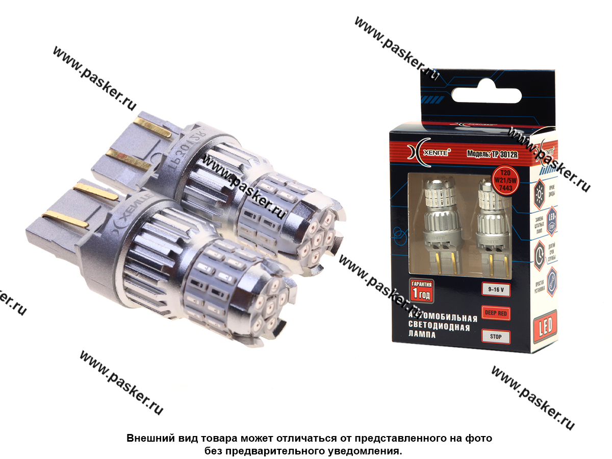 Лампа светодиодная T20/W21/5W XENITE 1009685 Тип лампы: Т20 (W21/5W) (7443). Цоколь: W3x16q. Тип светодиода: SMD 3030(6 шт.) + 4014(30 шт.). Вольтажность: 9-16 В. Стабилизатор напряжения: есть. Универсальная полярность: есть. Потребляемая мощность: 2,5 Вт. Яркость: 200 LM. Угол свечения: 360?. Цвет свечения: красный. Рабочая температура: от -40?С до +85?С. Срок службы: до 40000 часов.
