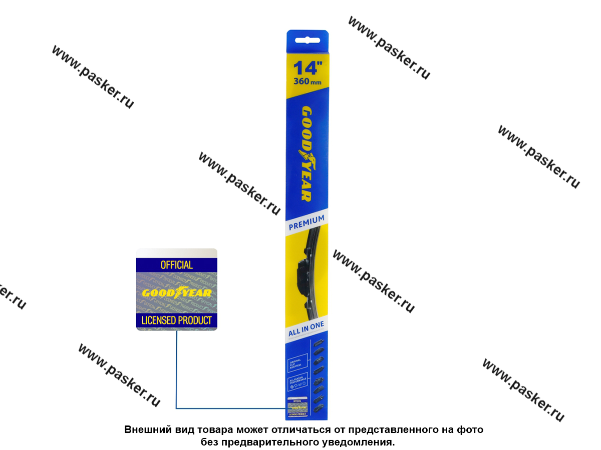 Щетки стеклоочистителя 36см универсальная Goodyear PREMIUM бескаркасная