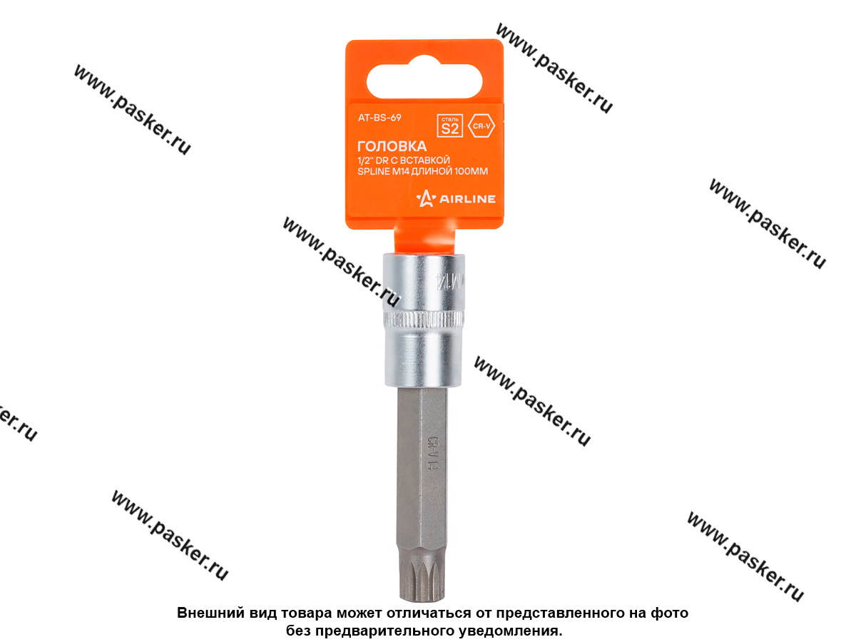 Головка торцевая 1/2 со вставкой SPLINE M14 L=100мм AIRLINE AT-BS-69