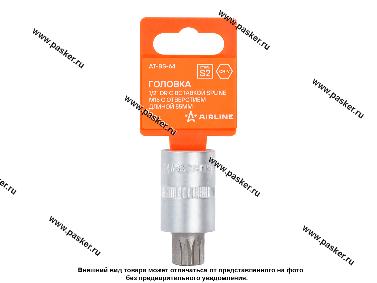 Головка торцевая 1/2 со вставкой SPLINE M16 L=55мм AIRLINE AT-BS-64