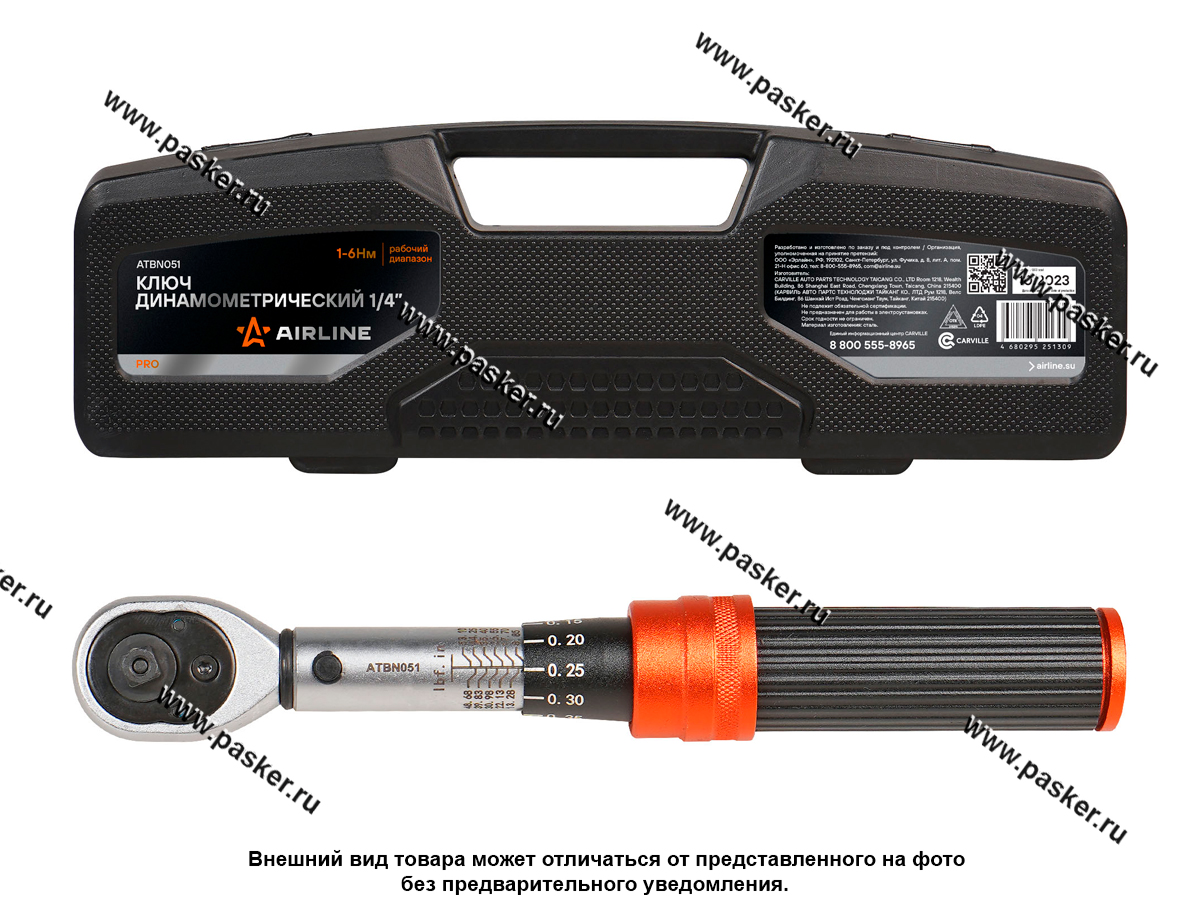 Ключ динамометрический 1/4 1-6Нм AIRLINE ATBN051