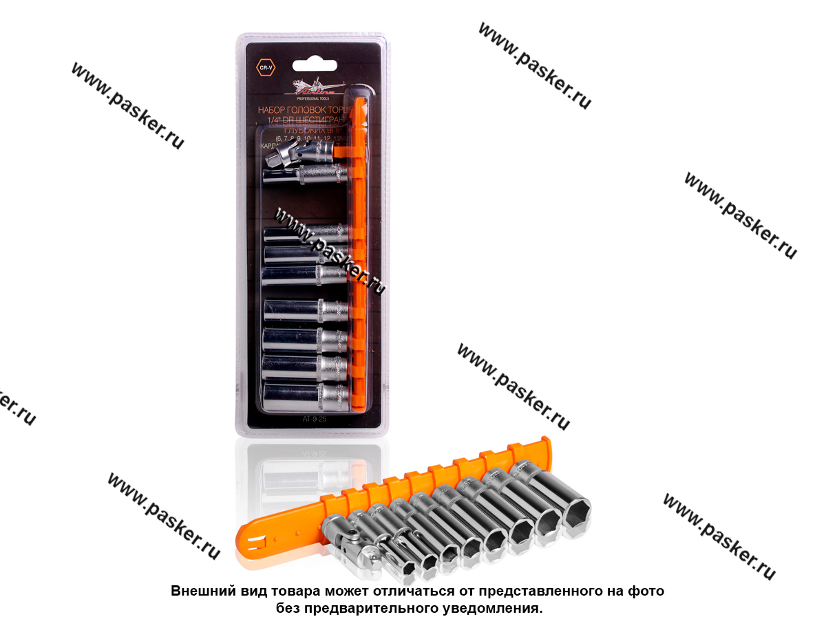 Головки торцевые 1/4 9 предметов шестигранные глубокие 6-13мм AIRLINE AT-9-25
