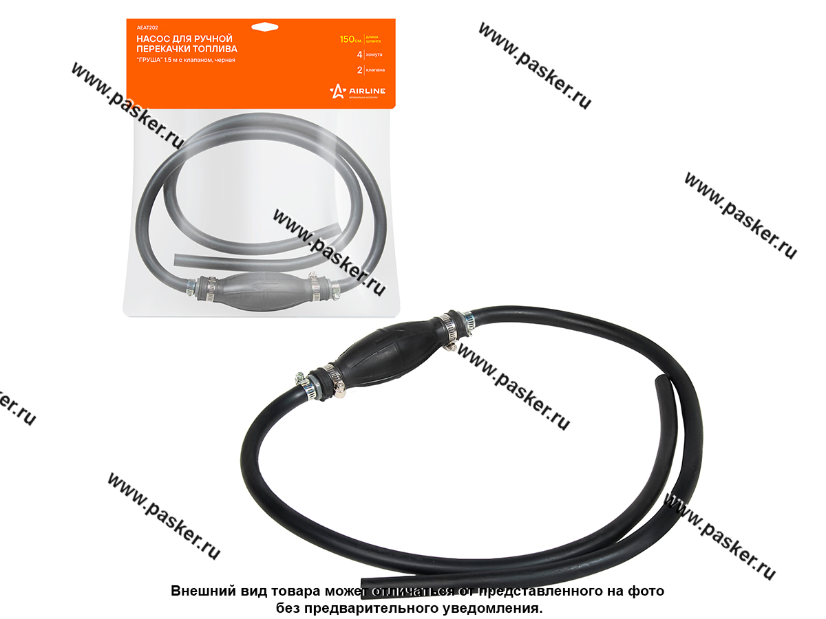 Насос для ручной перекачки топлива имеет специальный клапан, пропускающий перекачиваемое топливо только в одном направлении. Для перекачки бензина или дизельного топлива нужно один конец шланга окунуть в канистру или бензобак автомобиля и ритмично сжимать и разжимать грушу. На груше есть стрелка, которая показывает направление перекачки топлива. Главное условие – емкость, откуда перекачивают жидкость, должна быть выше ответной части (выше емкости, в которую перекачивают жидкость). Преимущества насосов перекачки топлива AIRLINE в клапане и 4 хомутах – необходимо просто нажать несколько раз на «грушу» и жидкость начнет выливаться. Насос для ручной перекачки топлива Груша сделан из маслобензостойкой резины.