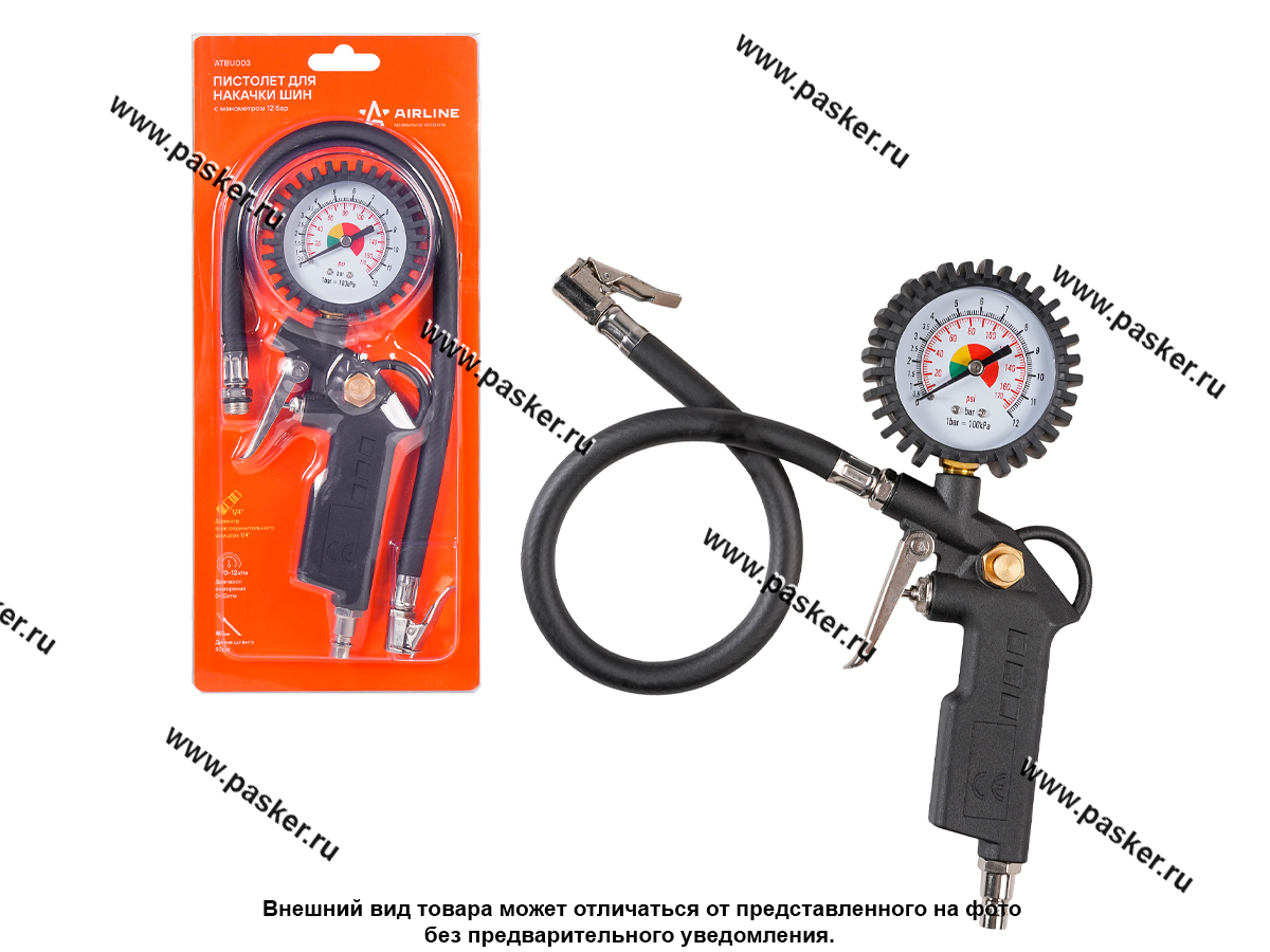 Пистолет для подкачки колес с манометром 12 АТМ AIRLINE ATBU003
