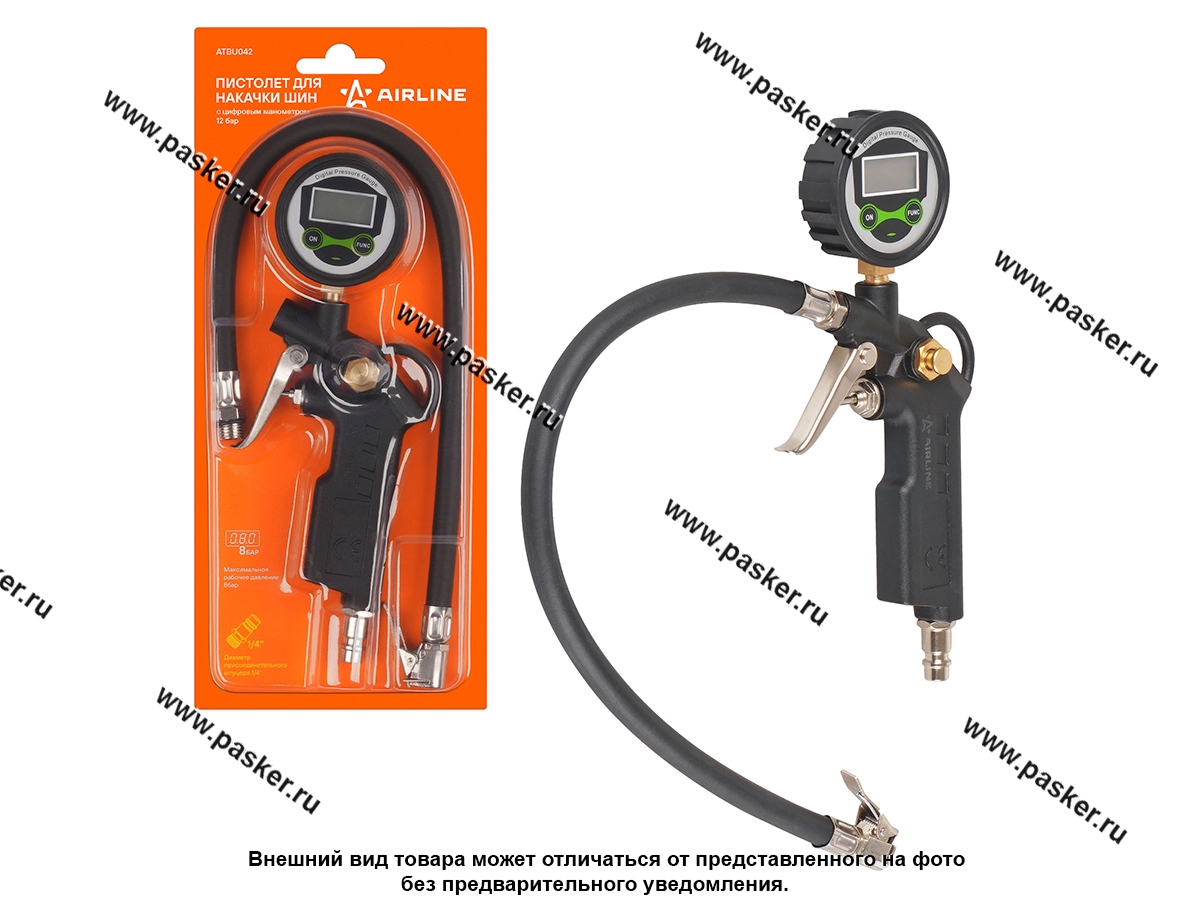 Пистолет для подкачки колес с цифровым манометром 12 АТМ AIRLINE ATBU042