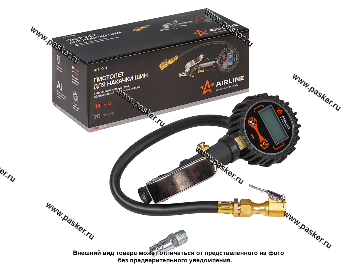 Пистолет для подкачки колес с цифровым манометром 14 АТМ PRO с клапаном сброса AIRLINE ATBU008