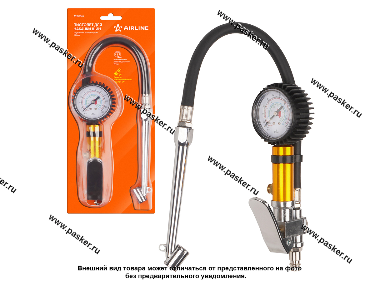 Пистолет для подкачки колес с манометром 15 АТМ AIRLINE ATBU045