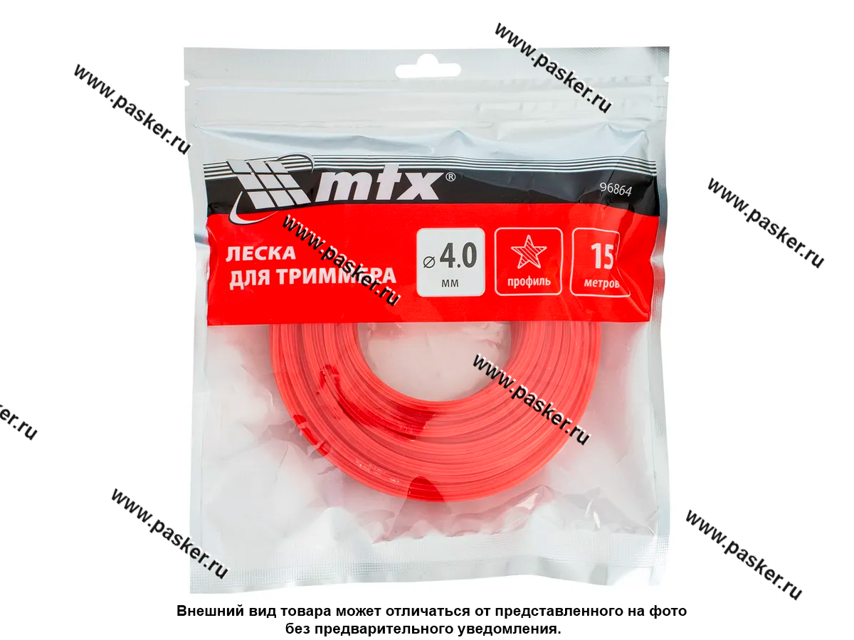 Леска для триммера MTX 96864 с сечением «звезда», толщиной 4,0 мм и длиной 15 м, подходит для скашивания как мягкой газонной, так и жесткой, а также сухой травы. Может применяться для срезания побегов кустов. Используется в качестве расходного материала для мощных бензиновых триммеров. Необходима для ухода за дачным участком, пригодится сотрудникам коммунальных служб.