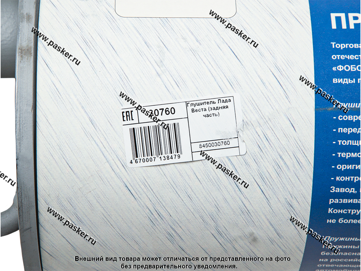 Глушитель выхлопной системы максимально приближен по конструкции к конвейерному изделию (конфигурация, объем, звукопоглощающие элементы). Глушитель выхлопной системы выполнен без применения абсорбирующих волокнистых материалов, зачастую накапливающих в себе конденсат. Глушитель выхлопной системы имеет увеличенную прочность за счет двойного резонатора, закатного шва и имеет гарантированную герметичность при перепаде давления не менее 0,4 кг/см. Глушитель выхлопной системы имеет повышенную коррозионную стойкость из-за отсутствия сварки внутренних элементов шумоглушения с корпусом бачка и применения для его изготовления качественного холодно-катанного и листового проката ведущих российских производителей толщиной не менее 1,5 и 1,2 мм. соответственно. Глушитель выхлопной системы при изготовлении окрашивается термостойкой (не менее 600 градусов Цельсия) эмалью и проходит контроль геометрии и герметичности. Глушитель выхлопной системы имеет сертификат соответствия требованиям технического регламента Таможенного Союза ЕАС.