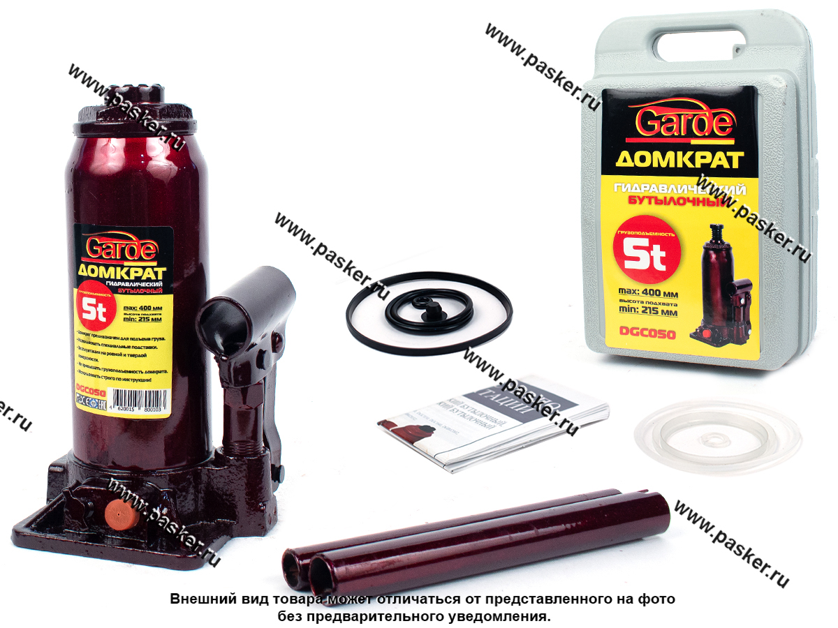 Домкрат гидравлический 5т Garde бутылочный в кейсе 215-400мм DGC050
